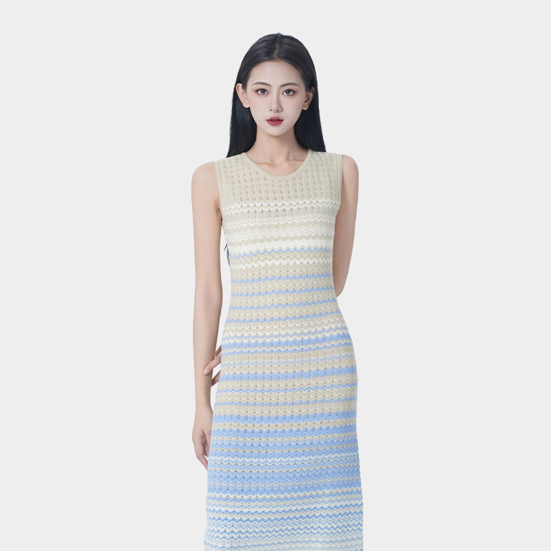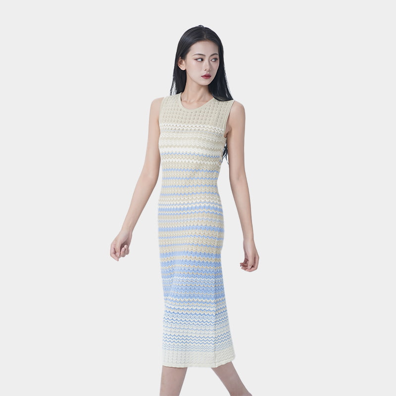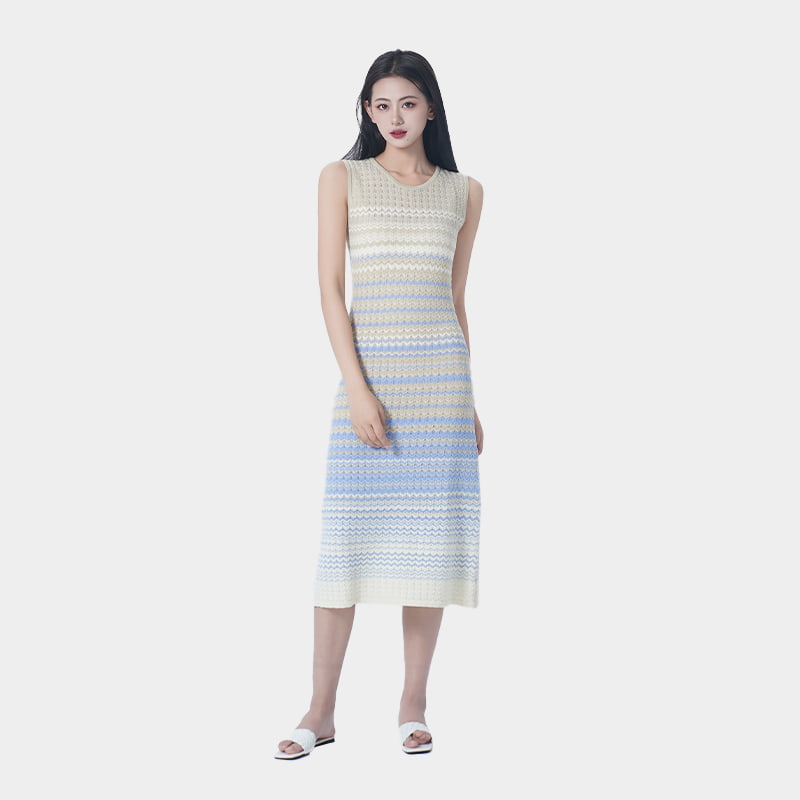 Made with a high proportion of Tencel, this dress offers excellent breathability and a soft touch. It fits the body without being tight, providing a comfortable wearing experience with no sense of restriction. The design creates a taller and slimmer appearance, beautifully outlining the body’s curves. The gradient color design transitions naturally from light to dark, making it visually striking and eye-catching. The sleeveless tank style is simple and elegant, suitable for layering in spring and autumn or wearing alone in summer.
